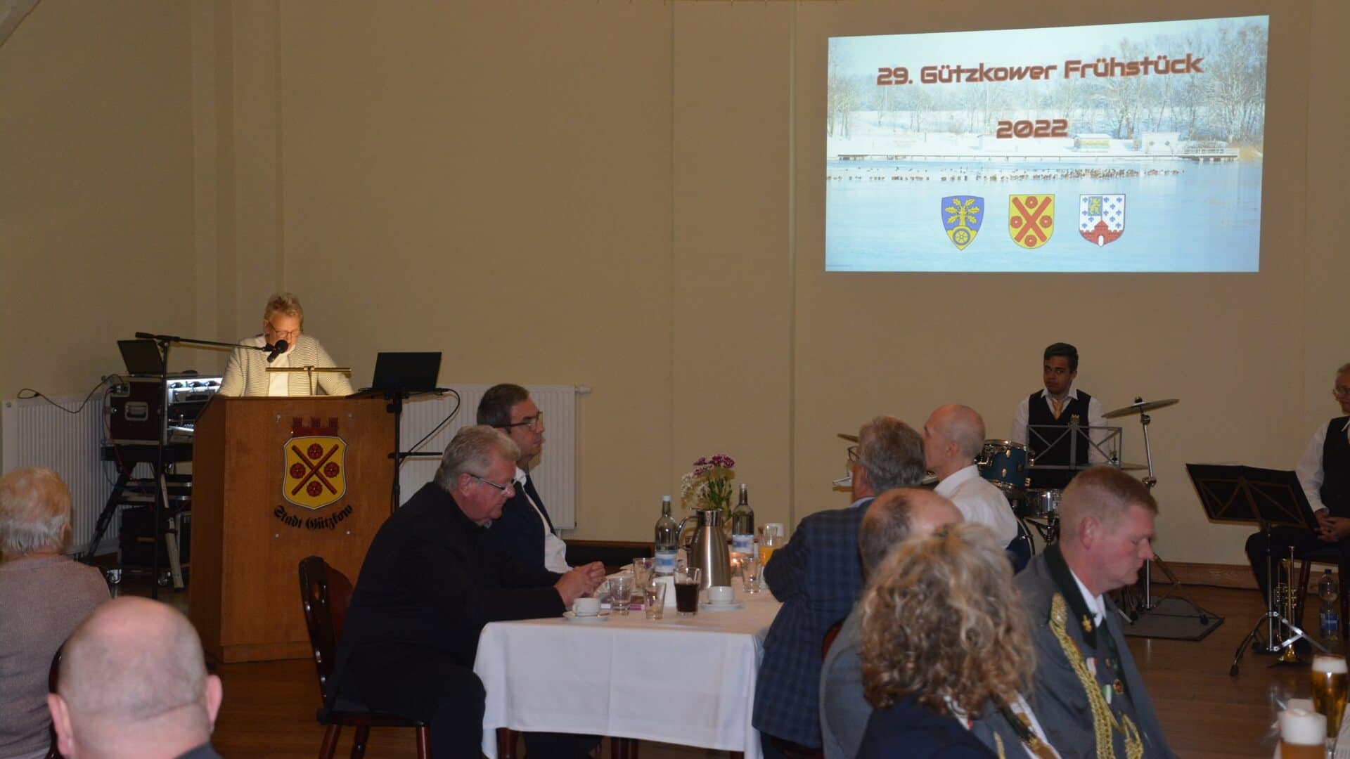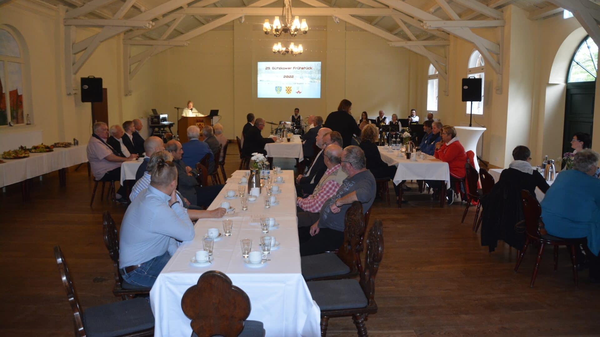 Anlässlich des Tages der Deutschen Einheit 2022 war eine Delegation unsere Partnergemeinde Bohmte zu Gast in Gützkow. Bei einem Abendessen im Bürgerhaus auf dem Hasenberg wurden die Gäste begrüßt. Zum kulturellen Beitrag ging es am Freitag, den 30.09. ins Schlossgymnasium Gützkow. 30 + 1 Jahr gab es dort, Pandemie bedingt, zu feiern und der Landkreis Vorpommern übergab feierlich die neu errichtete Sportanlage. Außerdem besichtigten die Gäste das neu restaurierte Schloss. Am Nachmittag ging es dann zur Besichtigung der Zuckerfabrik nach Anklam. Sportlich ging es weiter mit einer Bowlingrunde auf dem Gelände des neuen Caravan-Resorts in Gützkow. Ausklingen ließ man den Abend dann wieder bei einem gemeinsamen Abendessen im Bürgerhaus auf dem Hasenberg. Am Samstag den 1.Oktober und nicht wie gewohnt am 3. Oktober, durch die Feier im Gymnasium, gab es dann das 29.Gützkower Frühstück auf dem Hasenberg. Spendenthema war dieses Mal unser nicht mehr existenter Spielplatz in der Mascowstraße. Trotz der etwas dünnen Teilnahme an dieser Veranstaltung wurden 1015 Euro für dieses Projekt gesammelt, wir sagen allen Anwesenden herzlichen Dank! Als Gäste durften wir den Geschäftsführer der Wohnungsgenossenschaft Greifswald, Herrn Schneidewind und den Geschäftsführer des Unternehmens Energie Vorpommern GmbH, Herrn Arndt und seinen zukünftigen Nachfolger Herrn Wollkopf, begrüßen. Auch sie spendeten im Vorfeld eine nicht unbeträchtliche Summe, nicht zu vergessen die Volksbank-Vorpommern-Greifswald und die E.DIS AG, vielen Dank dafür! Dem Blasorchester der Stadt Gützkow einen herzlichen Dank für die musikalische Untermalung der Veranstaltung und dem Team vom Bürgerhaus einen herzlichen Dank für die Bewirtung!