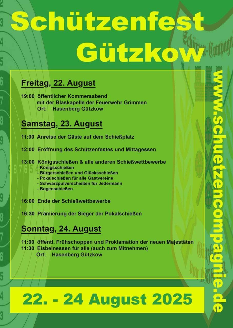 Schützenfest in Gützkow vom 22. – 24. August 2025
