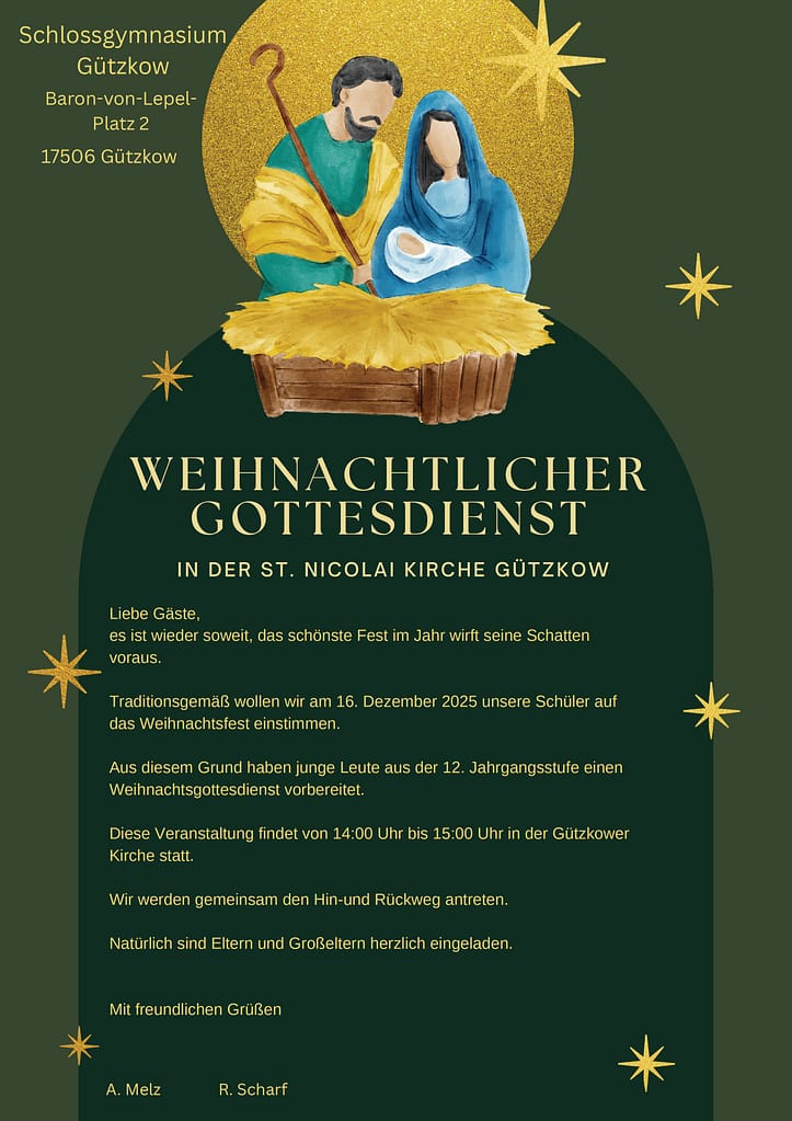 Die Schüler der 12. Jahrgangsstufe des Schlossgymnasiums Gützkow haben einen Weihnachtsgottesdienst vorbereitet!